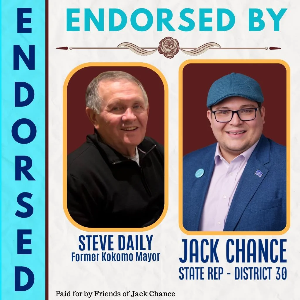“Jack Chance has been running for Indiana State Representative, District 30 for over a year. He has been attending public events, community meetings, churches, schools, parades, festivals, and fairs, engaging with people from all walks of life across central Indiana.